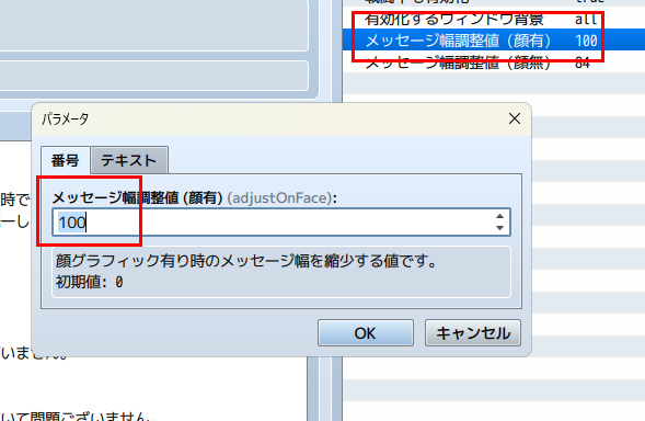 試しに、100と入れてみると、このようにメッセージ枠が狭まりました。