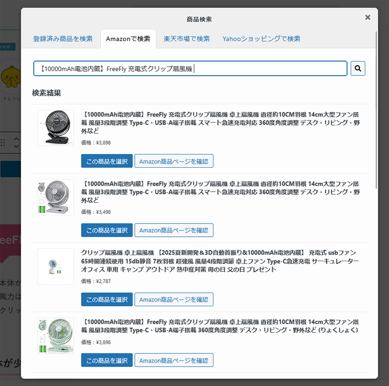 こんな感じに、無事商品名で検索した商品が出て来ました。
