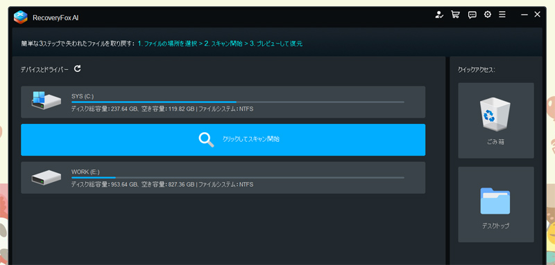 そんな時におすすめなのが、RecoveryFox AIというWindowsのみに対応した復元ソフトです。