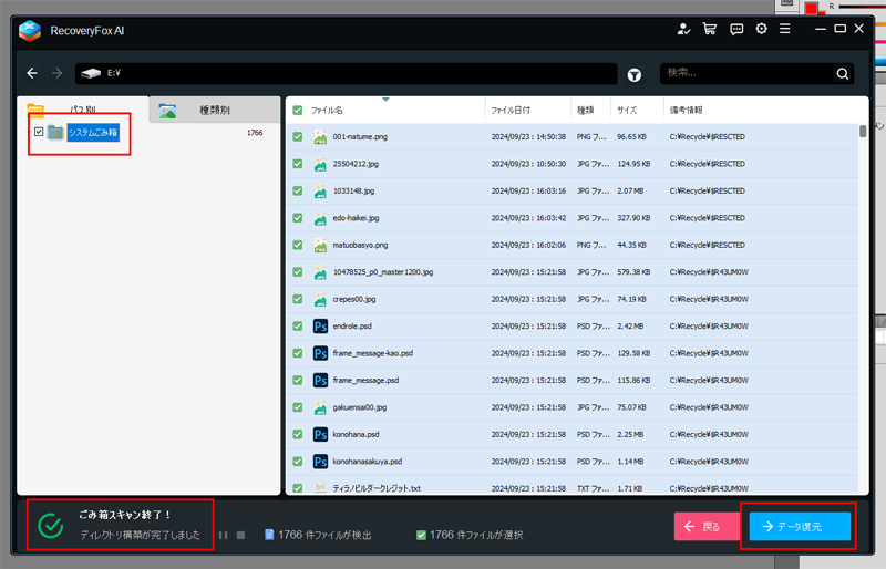 ごみ箱やデスクトップのファイル復元をするのは、他のソフトでは難しいですし、スキャンに時間がかかります。