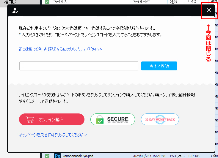 ただ、今回は消しては困る内容のファイルだったこともあり、有料版も試してみました。