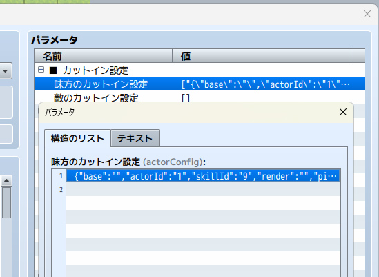 味方のカットイン設定を使いますが、ずらっと下に表示されるので、必要な分だけ追加して、残りは空行でも問題ありません。