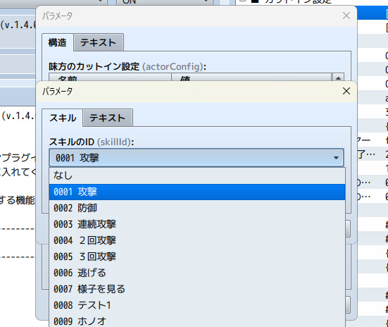 準備ができたら、設定の対象設定から、まず、アクターのIDとスキル(攻撃などデフォのスキルにも使えます)を選びます。