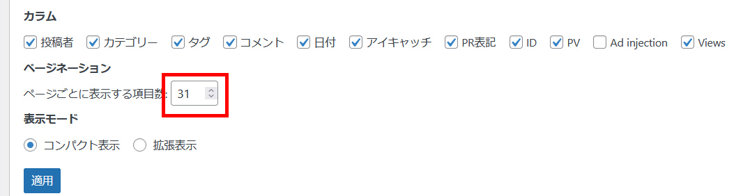 そこで、ここで検索してみると、表示オプションを使えば、一覧ページに20個以上の記事が並べられるようになりました。
